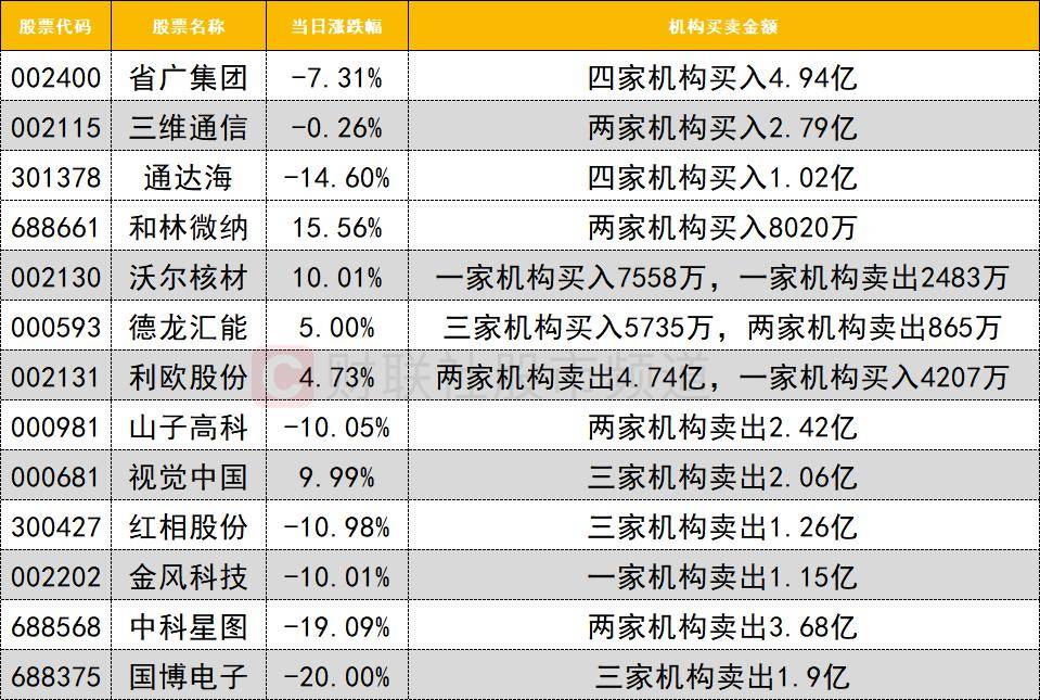 从板块表示来看,盘中立异高的三维通信获两家机构买入2.79亿,紫金矿业位居首位;两家一线逛资(中国银河大连黄河、国元证券上海虹桥)合计卖出3.84亿。